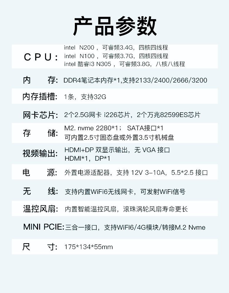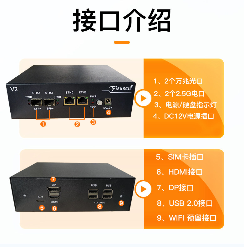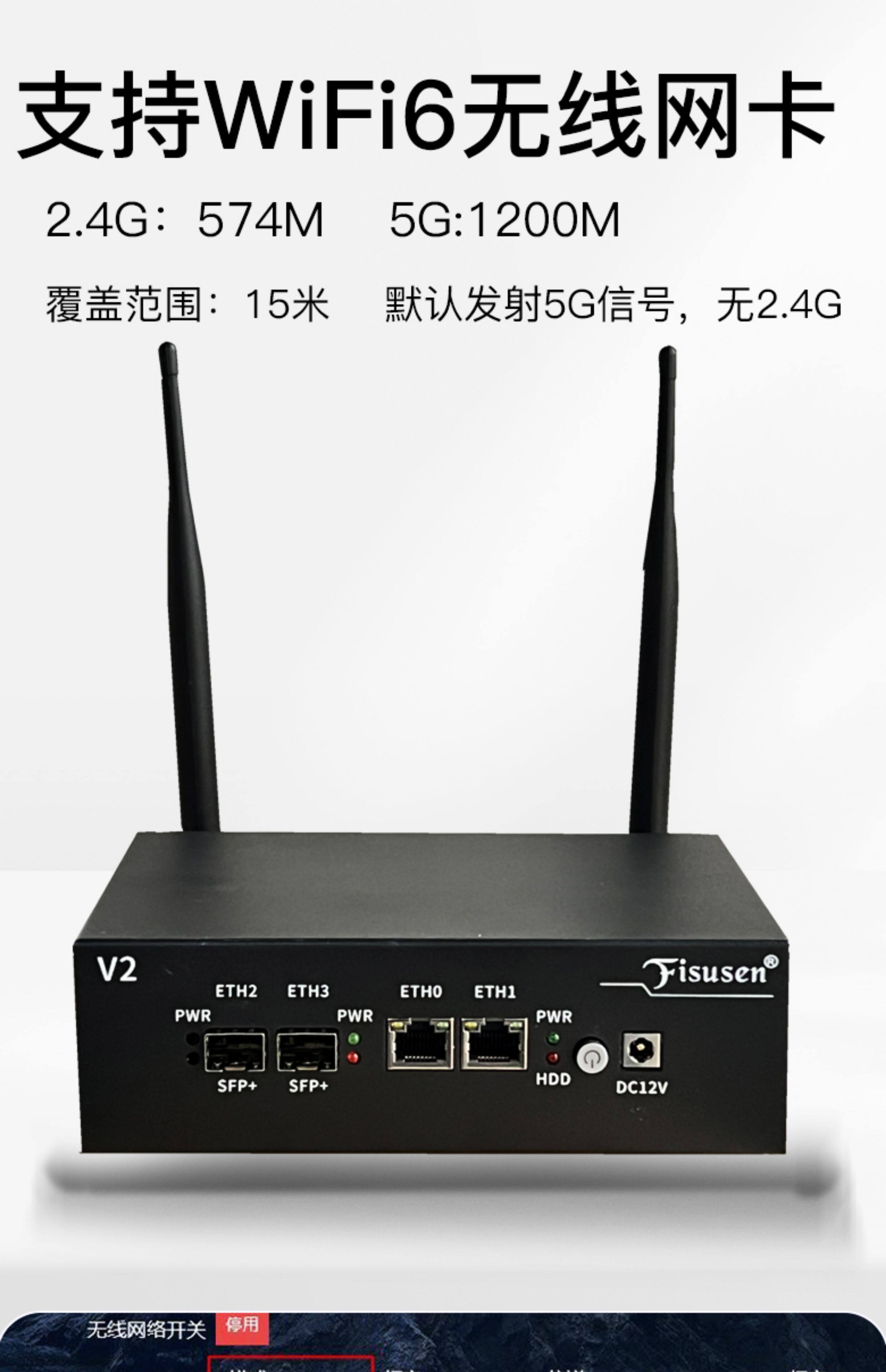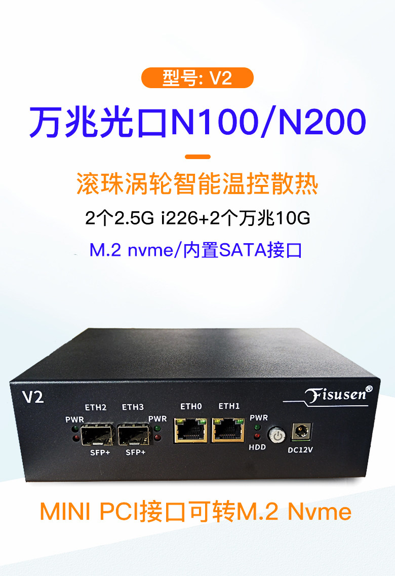 Fisusen双万兆光口10G/N100ES/N200工控软路由迷你主机企业路由器